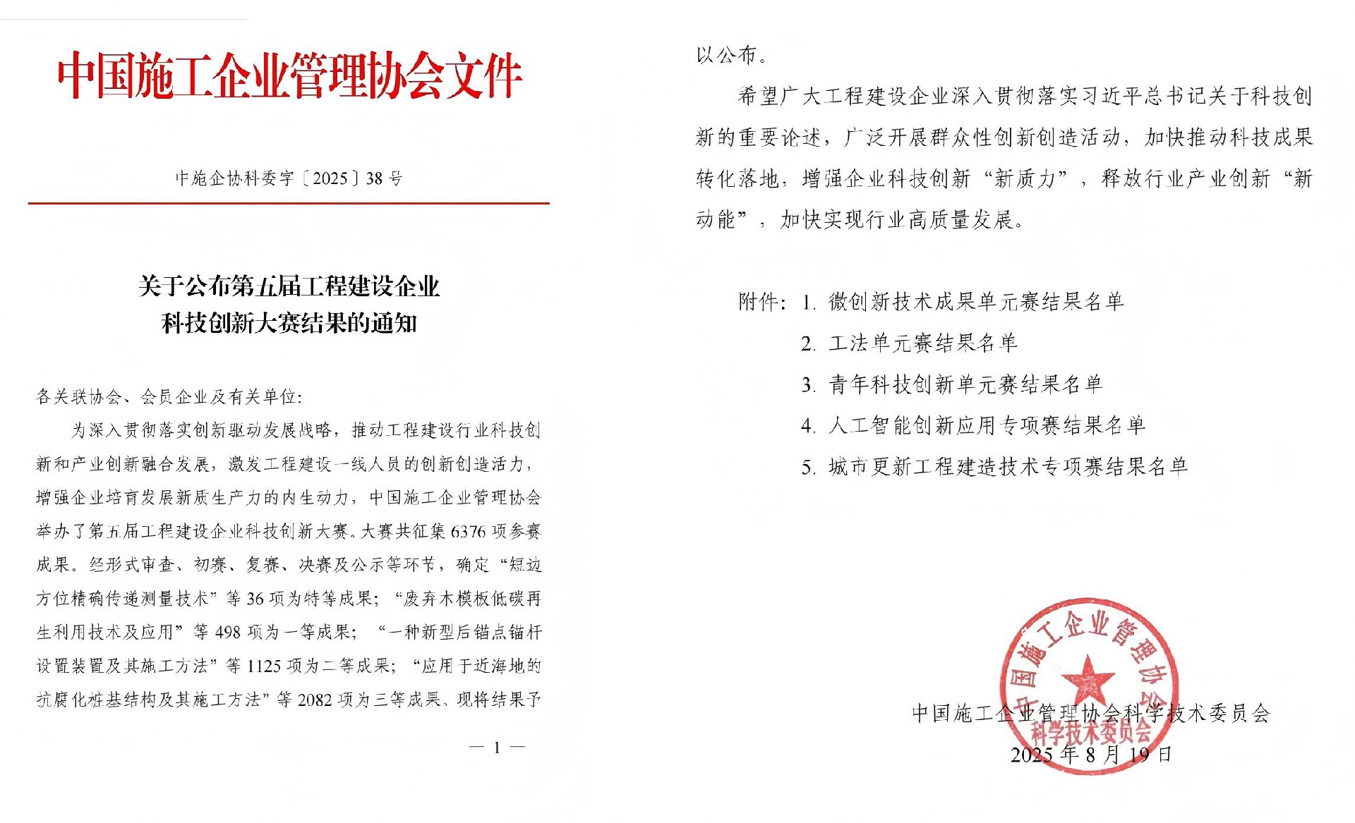 近日,第五屆全國(guó)工程建設(shè)企業(yè)科技創(chuàng)新大賽獲獎(jiǎng)結(jié)果出爐,集團(tuán)在“青年科技創(chuàng)新單元賽”中斬獲一···